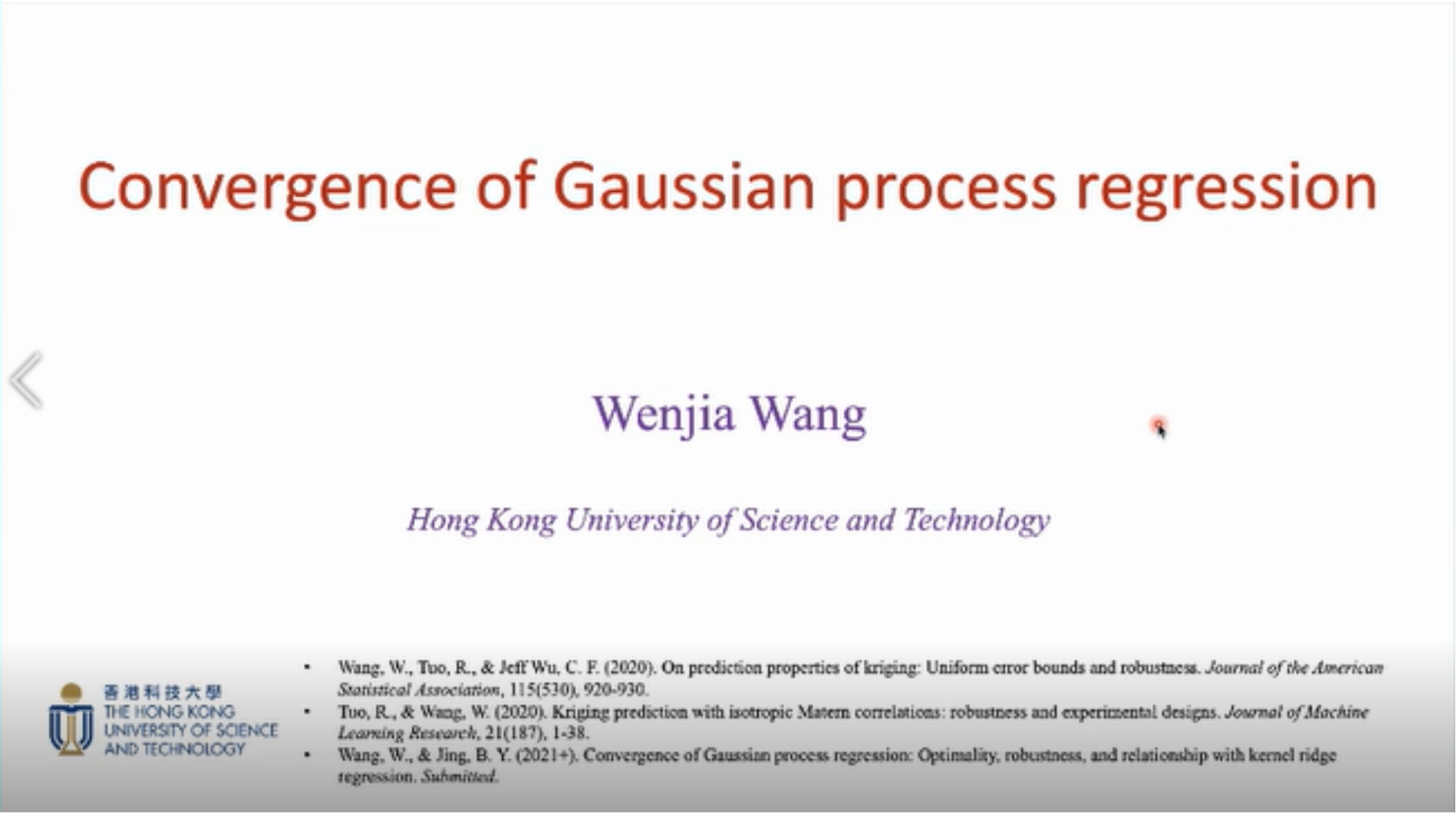 2021年12月17日,香港科技大学助理教授王文佳应日本a片 邀请进行了以“Convergence of Gaussian process regression”为主题的讲座。