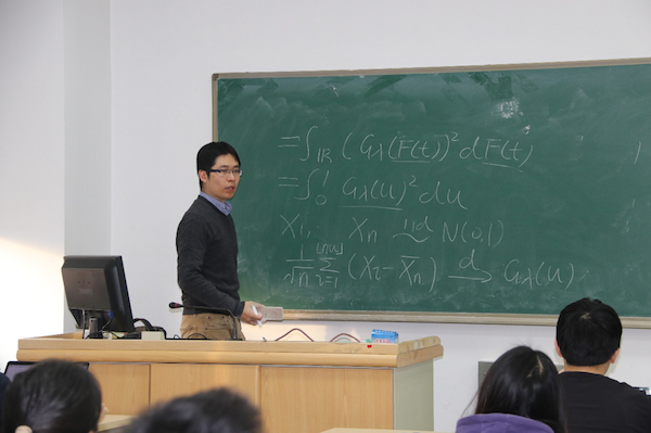 12月18日,张老师在公共教学二楼2321教室和2410教室为大家讲授了Martingale and Dudley’s integral entropy。