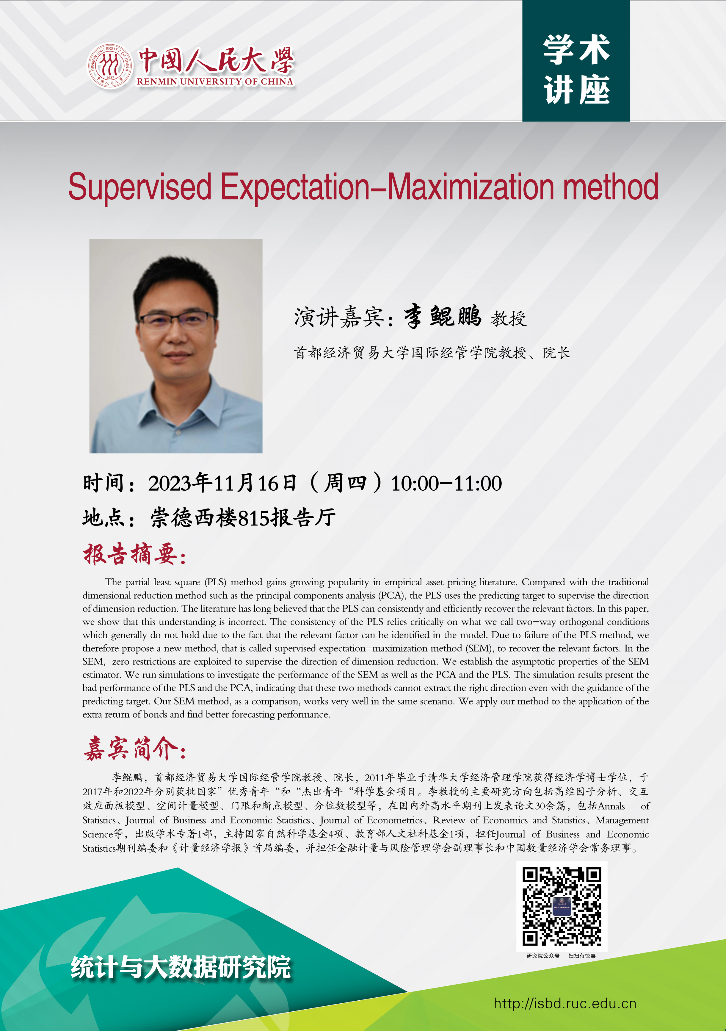 预告:日本a片 将邀请首都经济贸易大学国际经管日本a片 院长李鲲鹏教授到院讲座