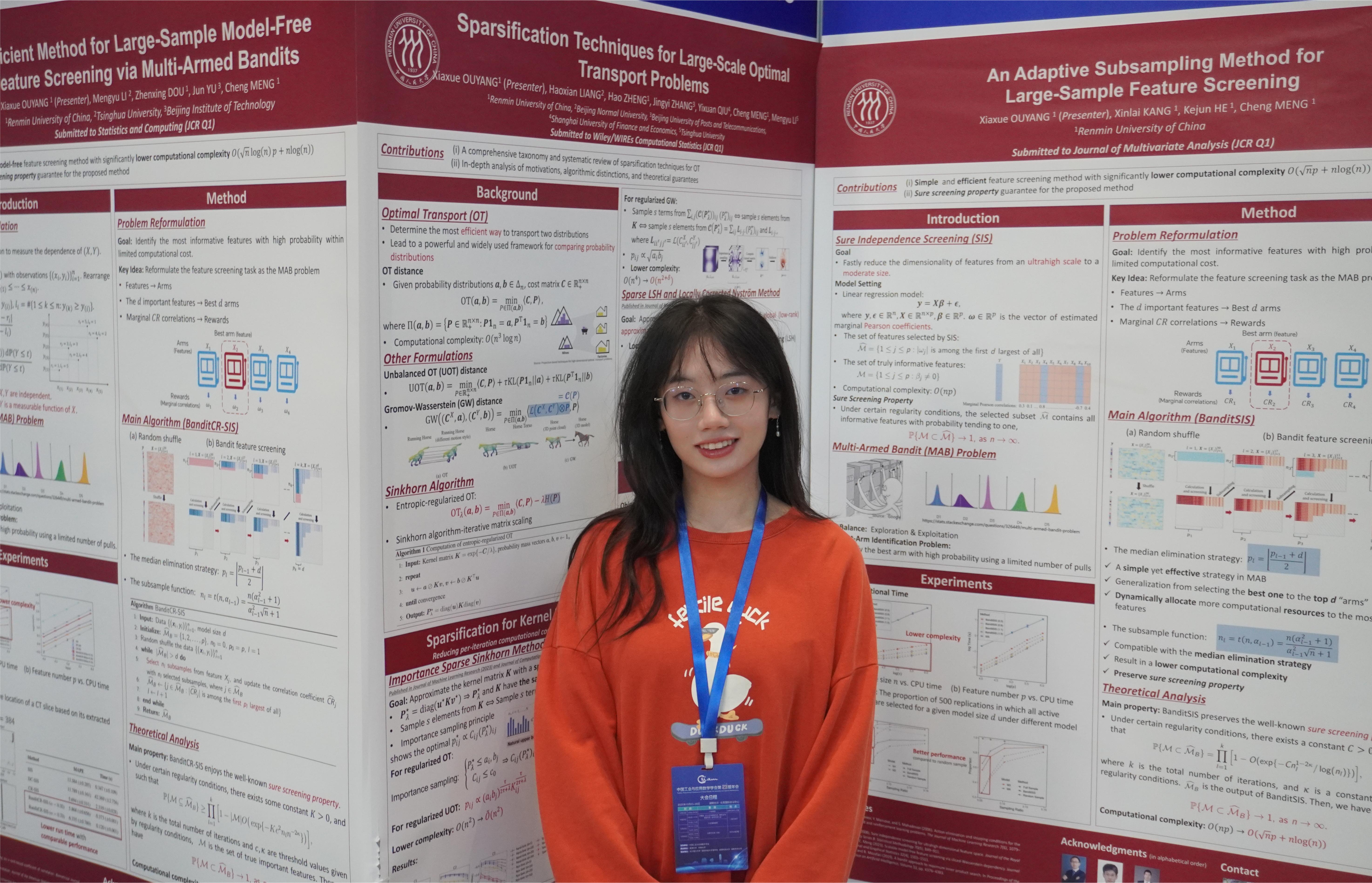 欧阳夏雪,日本a片 2023级博士生,主要研究方向为大数据加速算法。欧阳夏雪进行了题为“Sparsification Techniques for Large-scale Optimal Transport Problems”和“A More Efficient Method for Large-sample Model-free Feature Screening via Multi-armed Bandits”的海报展示。
