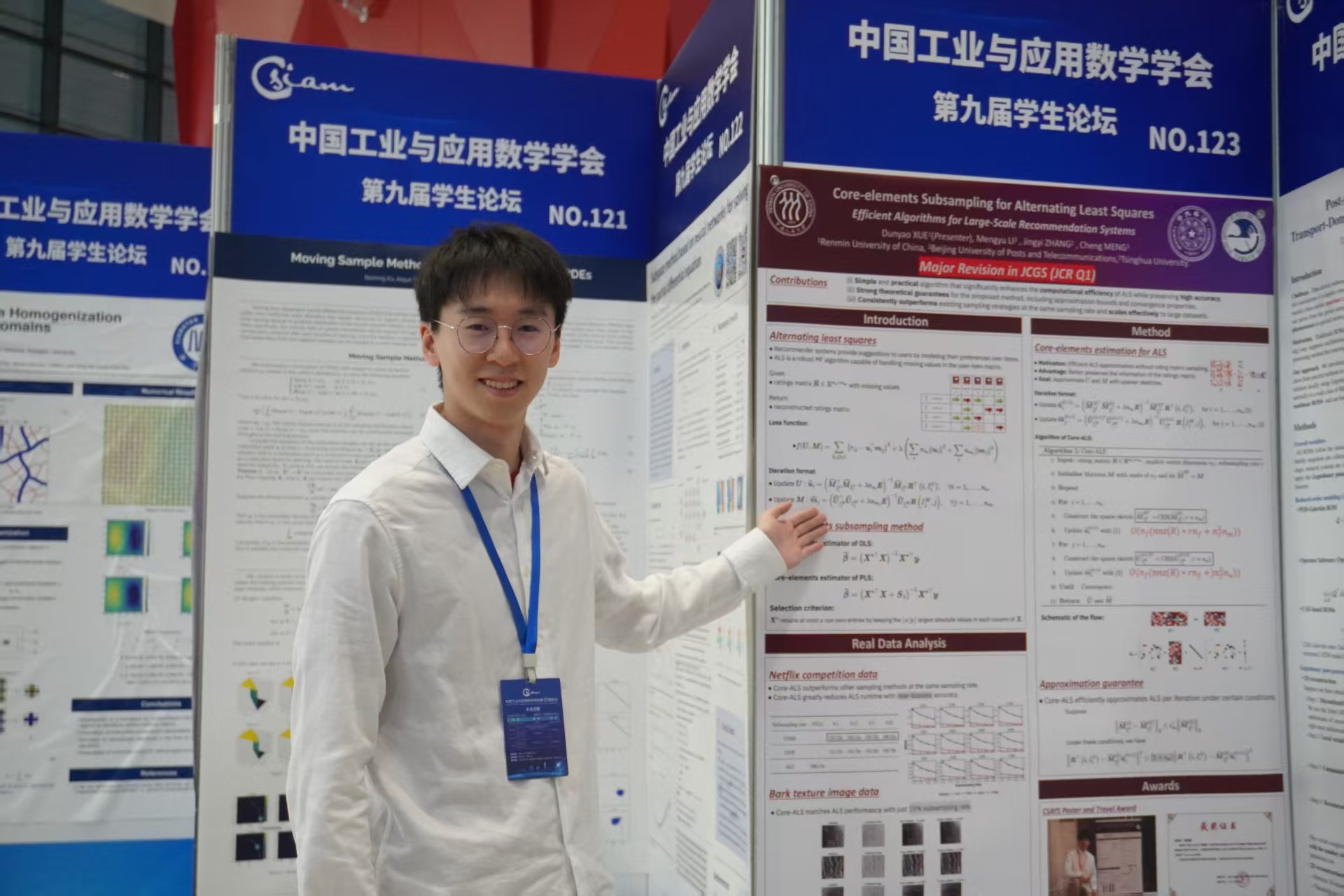 薛敦耀,日本a片 2024级博士生,主要研究方向为大数据子抽样、最优传输及其应用、大语言模型等。薛敦耀进行了题为“Core-elements Subsampling for Alternating Least Squares”的海报展示,成果发表于JCGS。