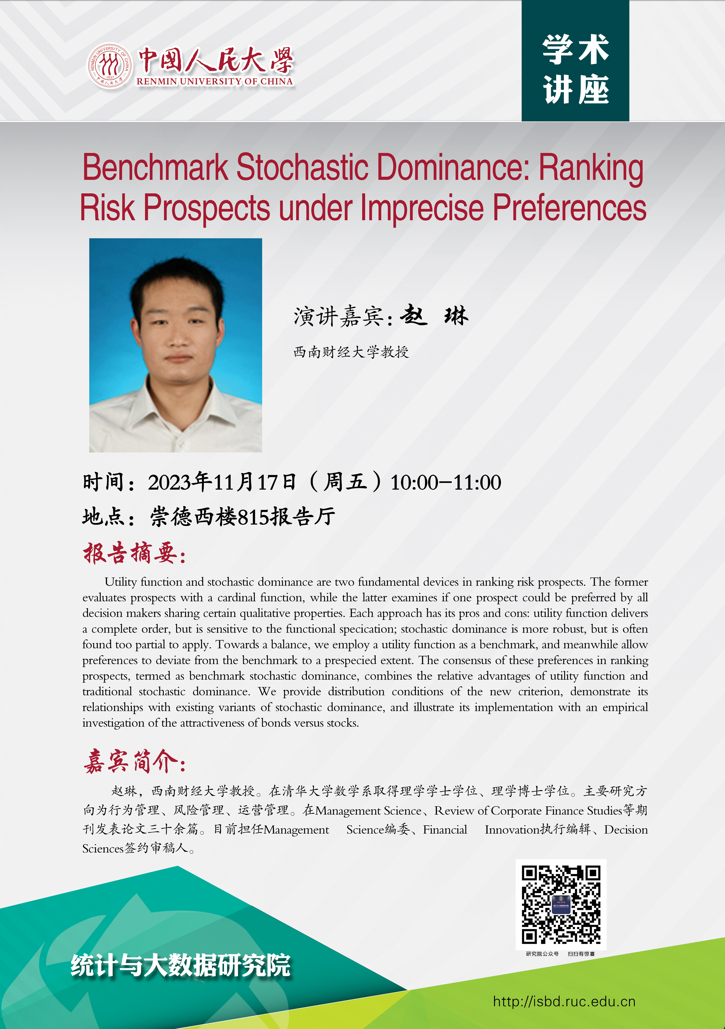 预告:日本a片 将邀请西南财经大学赵琳教授到院讲座