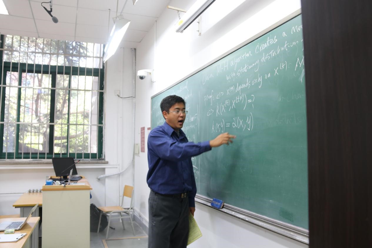 第三天,HAN GANG老师为我们介绍了应用于随机过程分析的“Metropolis-Hastings algorithms”。Metropolis-Hastings采样算法过程一直持续到采样过程的收敛,此时选取的样本可认为是目标分布的样本。Metropolis-Hastings algorithms使用了会收敛到目标分布的马尔科夫链进行采样,有效地避免了接受拒绝算法在进行高维空间采样时,可能会出现的“curse of dimensionality”问题,目前被广泛地应用于高维统计研究。
