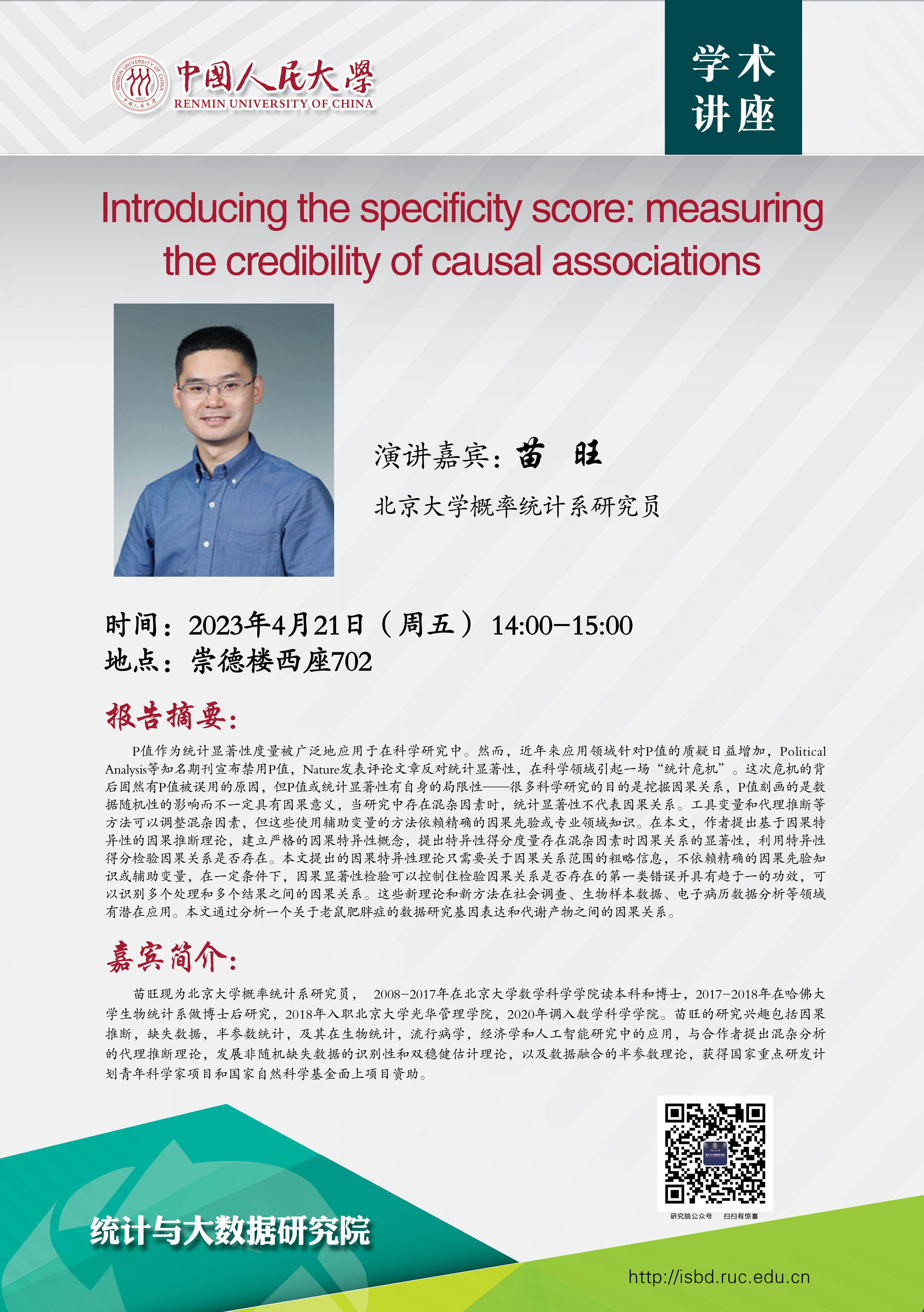 预告:日本a片 将邀请北京大学苗旺研究员到院讲座
