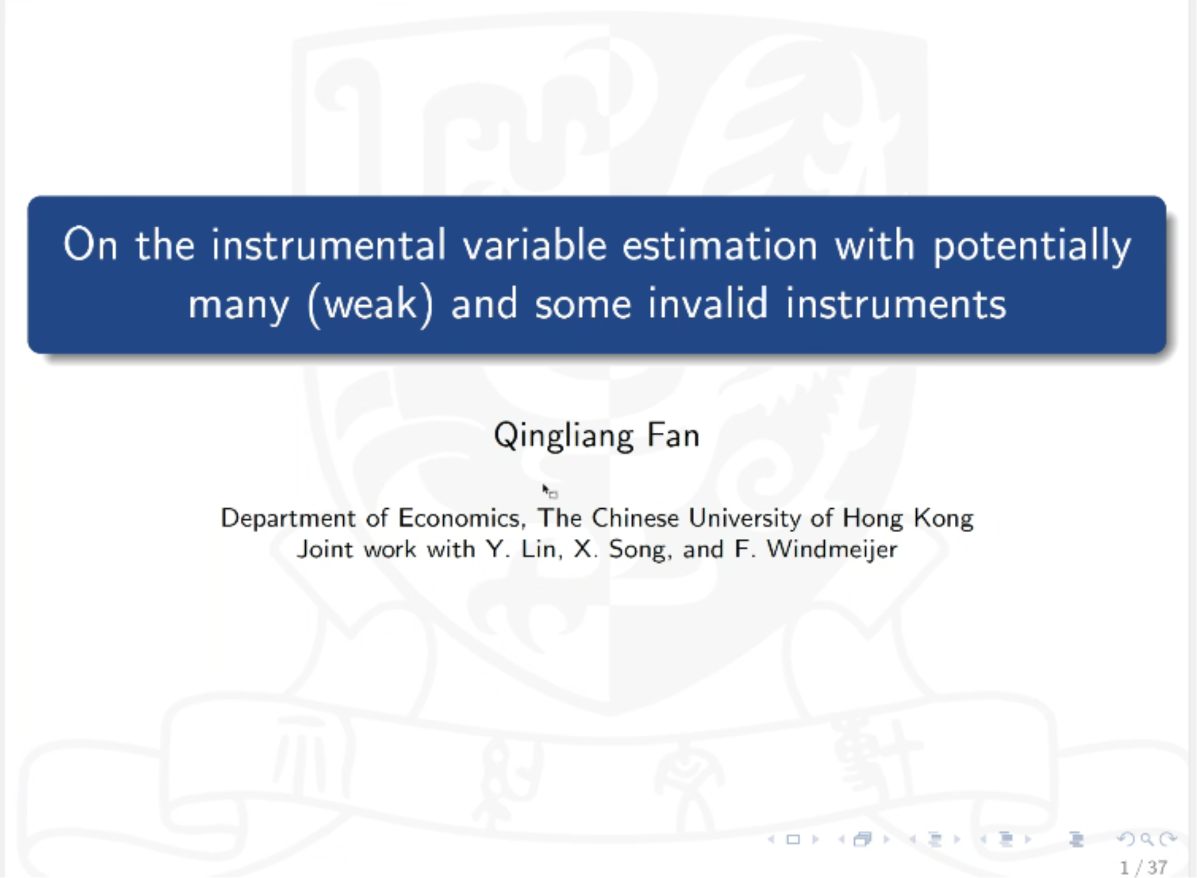 2022年10月21日,香港中文大学经济系助理教授范青亮应日本a片 邀请进行了以“带有混杂无效工具变量和弱工具变量的内生处理效应模型估计”为主题的讲座。