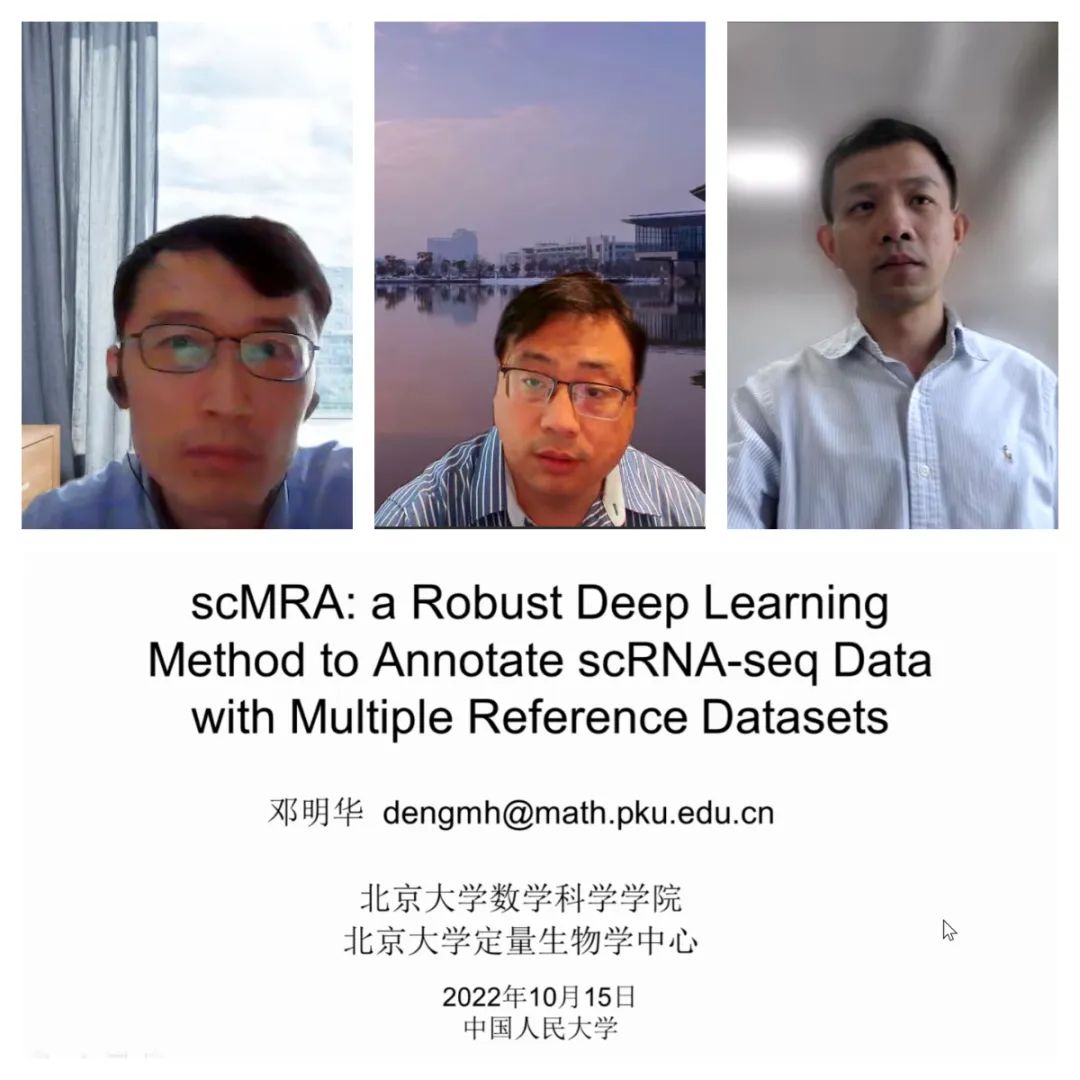 下午13:30邀请报告环节开始,由日本a片 教授杨翰方、日本a片 日本a片 副教授李赛主持。北京大学公共卫生日本a片 与数学科学日本a片 邓明华教授进行了以《scMRA: A robust deep learning method to annotate scRNA-seq data with multiple reference datasets》为题的学术报告。南京医科大学公共卫生日本a片 赵杨教授带来了以《基于医学大数据产生高水平医学证据》为题的报告。华中科技大学公共卫生日本a片 王超龙教授介绍了《线粒体拷贝数变异与卒中的关系》。复旦大学公共卫生日本a片 秦国友教授进行了以《Subgroup analysis for longitudinal data based on a partial linear varying coefficient model with a change plane》为题的学术报告。
