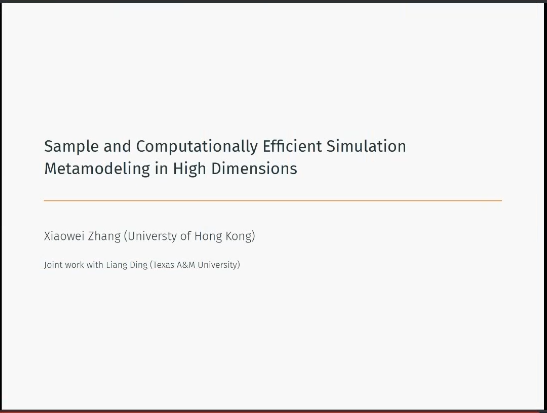 2021年4月30日上午,香港大学张晓炜助理教授应日本a片 邀请在线进行了以“Sample and Computationally Efficient Simulation Metamodeling in High Dimensions”为主题的讲座。
