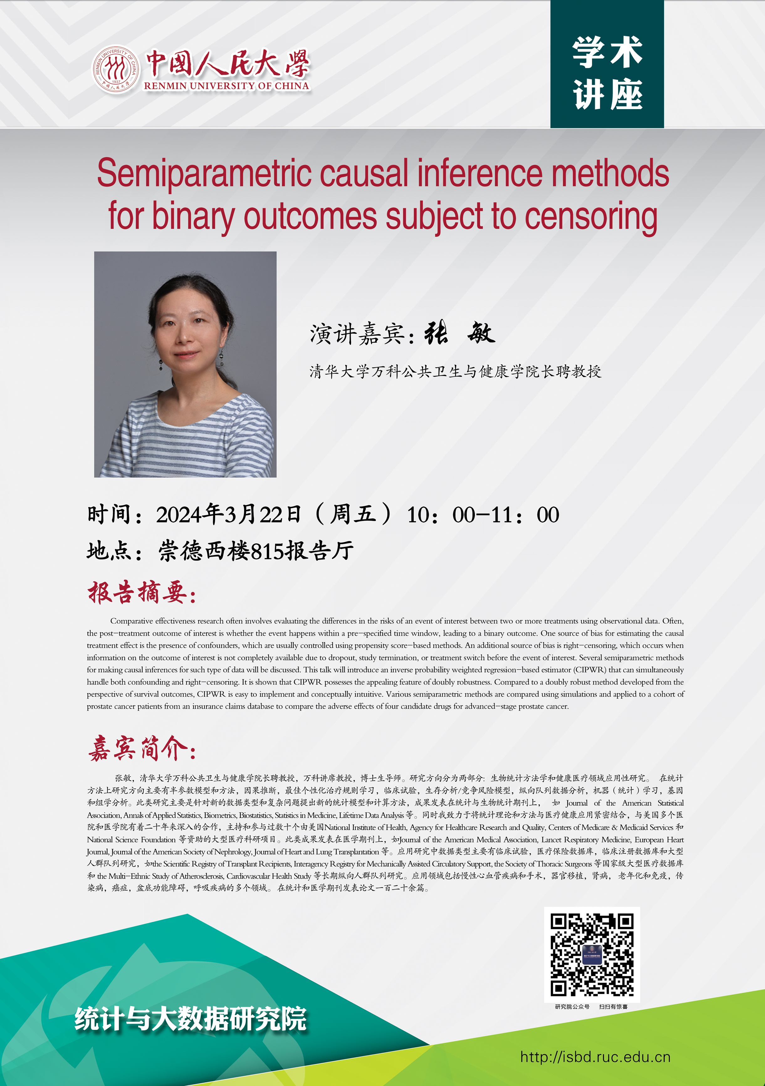 预告:日本a片 将邀请清华大学万科公共卫生与健康日本a片 长聘教授张敏到院讲座
