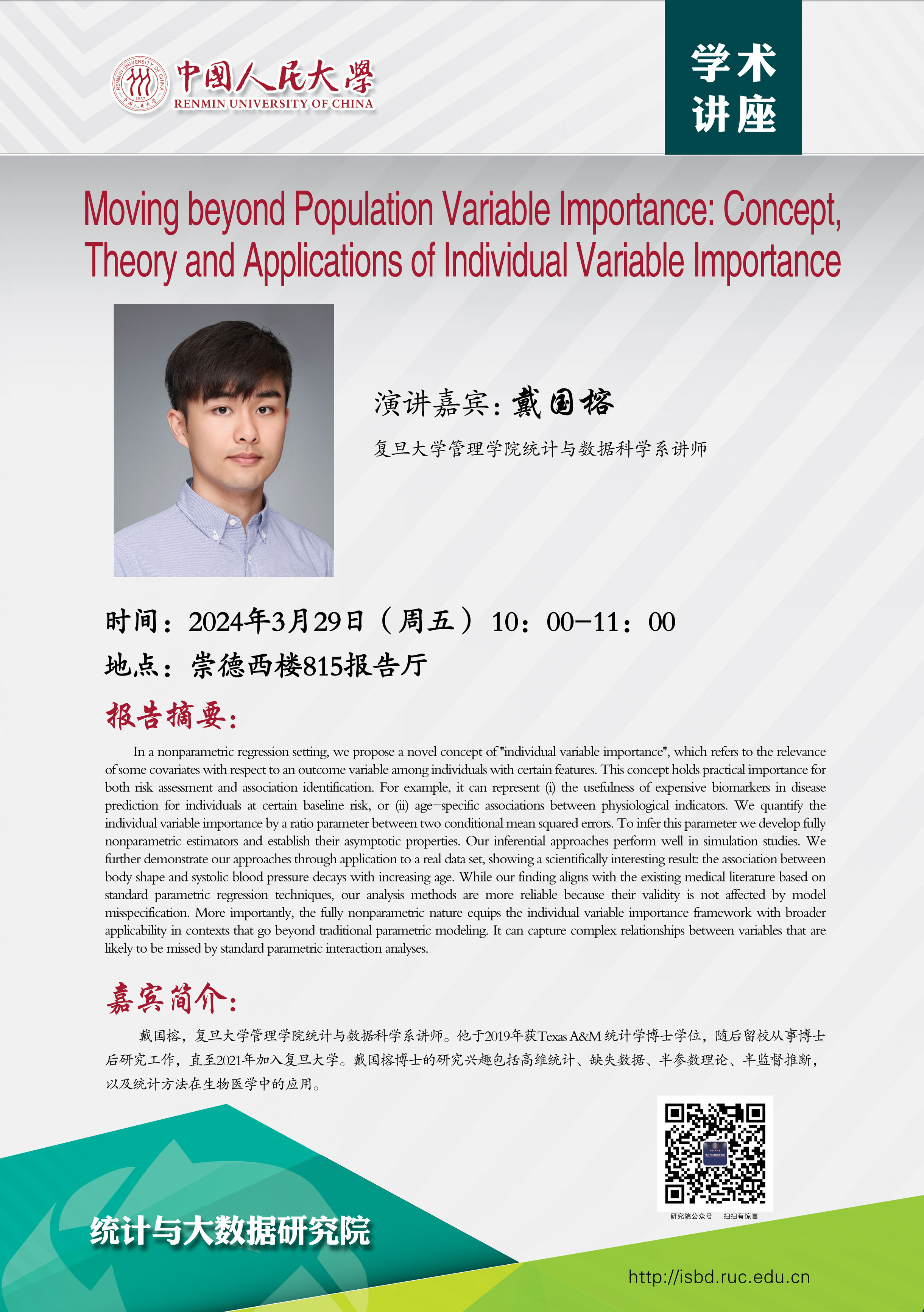 预告:日本a片 将邀请复旦大学管理日本a片 统计与数据科学系讲师戴国榕到院讲座
