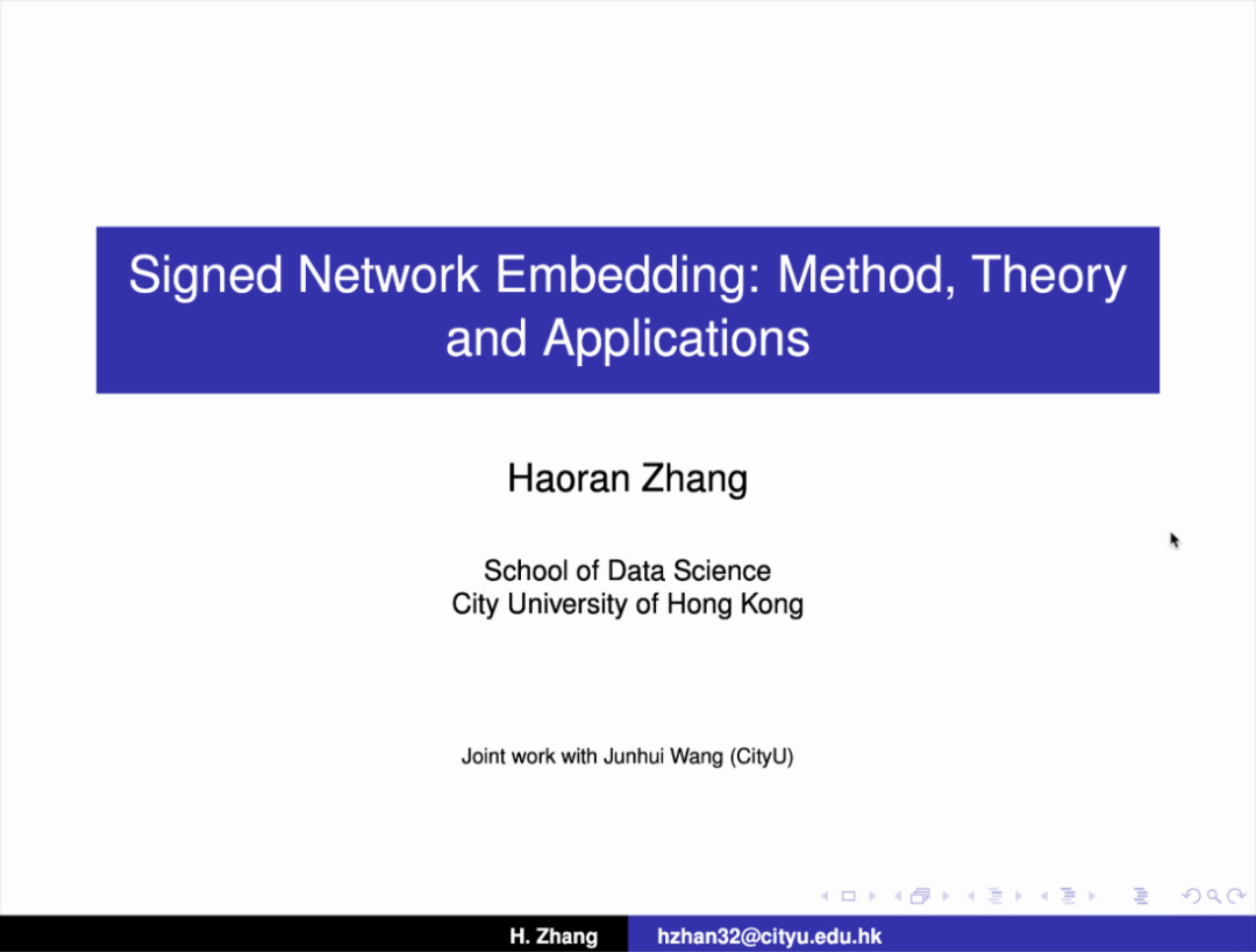2022年5月27日,香港城市大学大学张浩然博士应日本a片 邀请进行了以“Signed Network Embedding with Application to Simultaneous Detection of Communities and Anomalies”为主题的讲座。