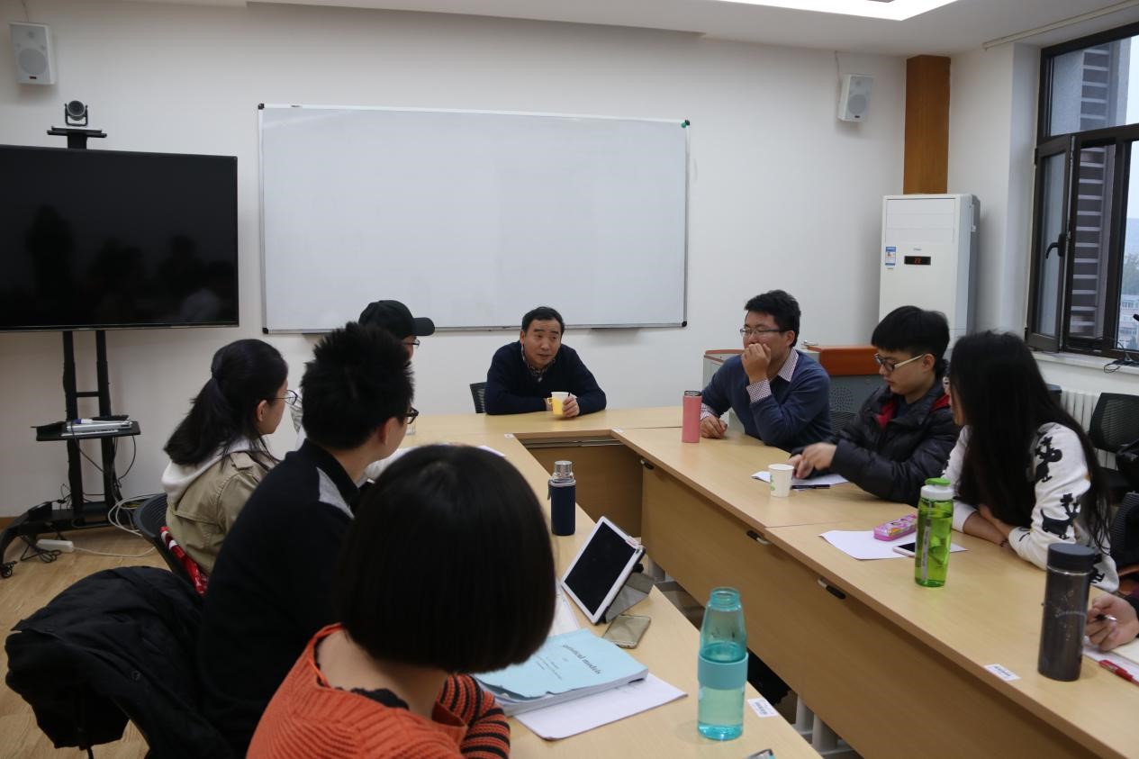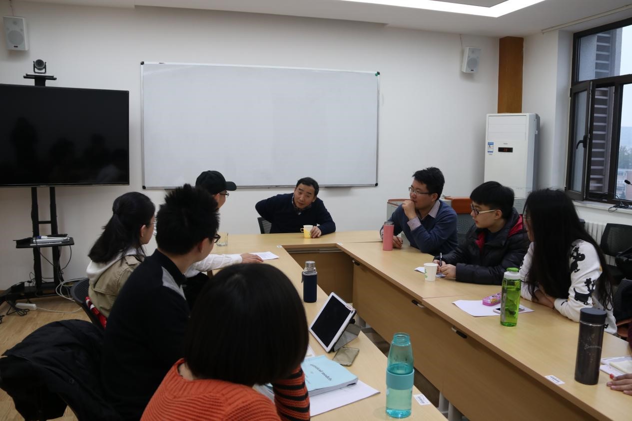 研究院有幸邀请到中科院数学与系统科学研究院概率室主任孙六全教授为各位博士生传授经验、指点迷津。会议初始阶段,朱教授先让各位同学向孙教授做了自我介绍,然后同大家聊了一些生活问题,营造出了较好的交流氛围。