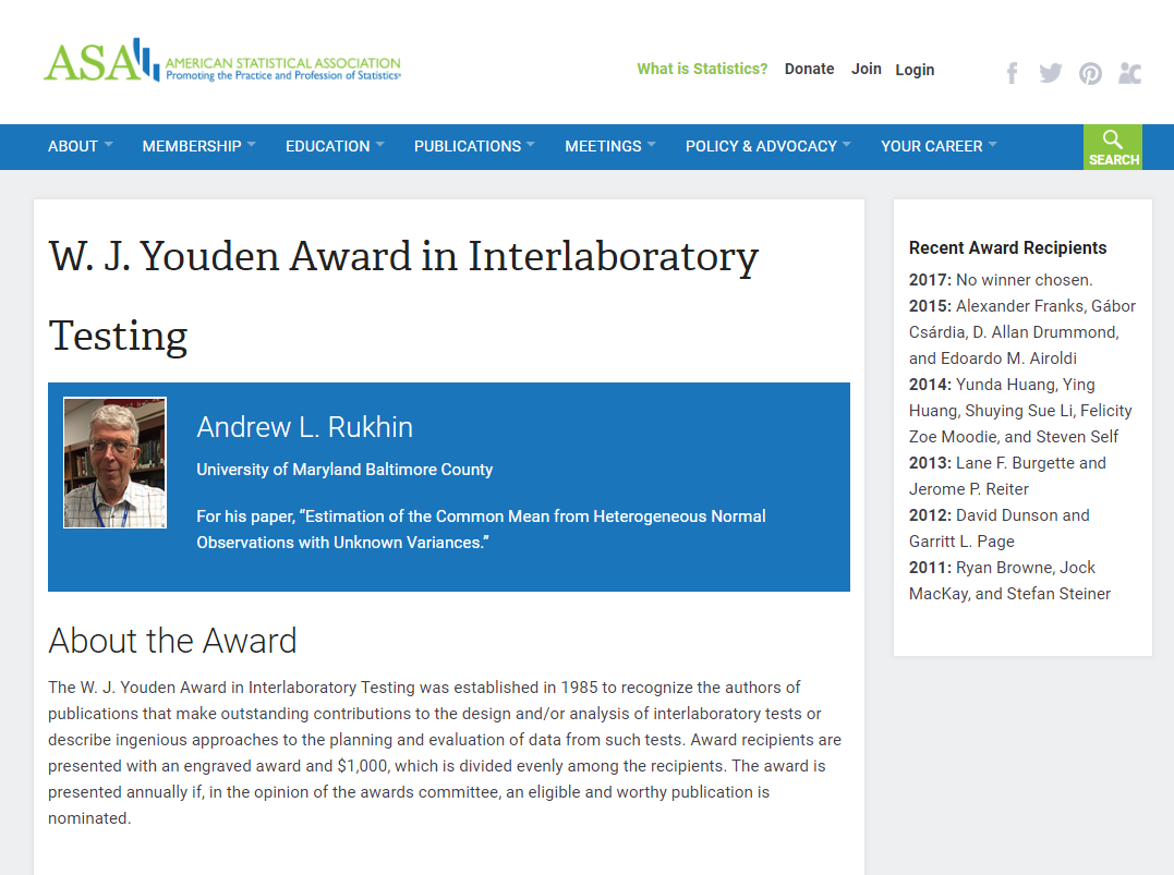 附:W.J. Youden Award in Interlaboratory Testing简介