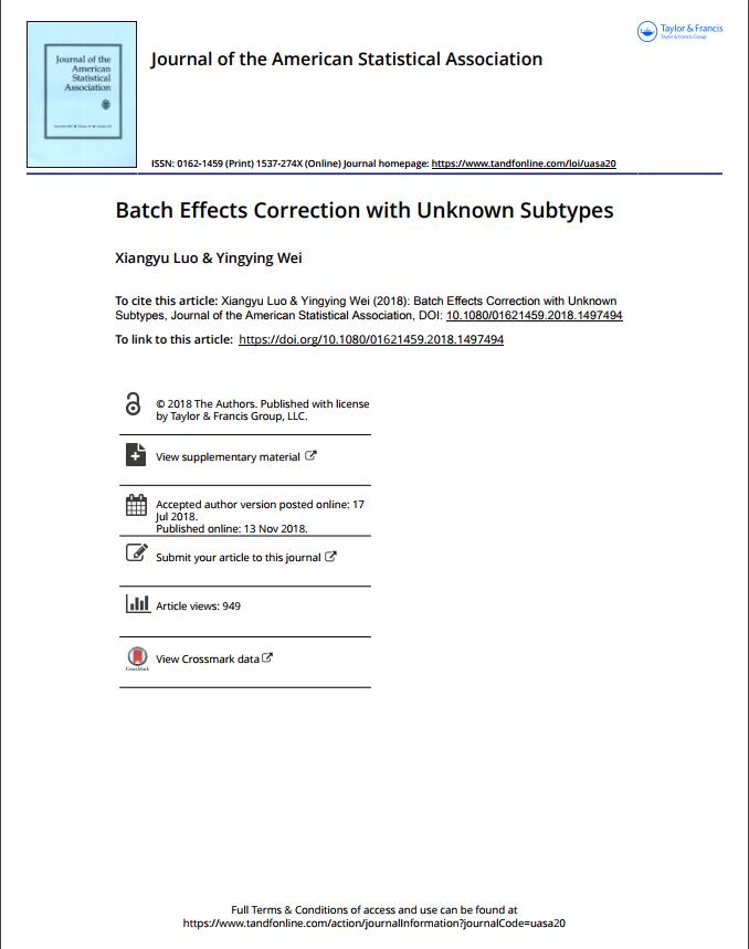 目前,高流量的实验数据(High-throughput experimental data)在公共数据库中呈指数级增长,对其中存在的批量效应(batch effects)的修正还亟待完善。罗老师的论文提出了一个用于解决该问题的新方法,将位置和尺度调整模型(a location-and-scale adjustment model)与基于模型的聚类相结合(model-based clustering),形成一种新的混合模型,即具有未知子类型的批量效应修正模型(the batch-effects-correction-with-unknown-subtypes model,BUS)。新模型显著减弱了批量效应对数据分析的影响,具有相当的理论与实践意义。